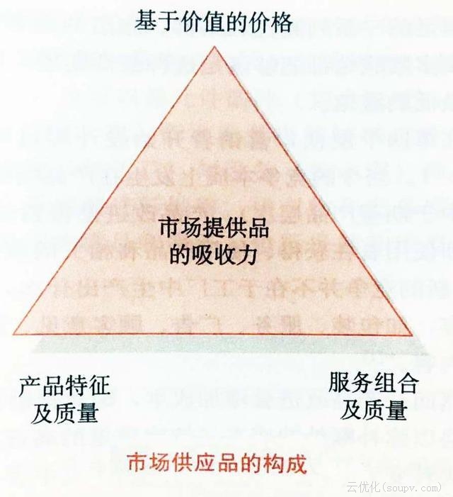 产品能否建立竞争U势,也可以从产品对顾客是否有吸引力来判定,如下图,有三个基本判定标准:产品特征及质量(产品满足顾客的核心需求的程度)、服务组合及质量、基于价值的jiage(模式是怎么样的一般由商业逻辑决定)。这三个要素是适用于衡量to B产品的。毕竟如果这本身就是一个能满足顾客核心需求的产品,服务也还可以,价值设置为0,也就是免费了,这是降维攻击了,对顾客会有相当大的吸引力。免费的前提是能从其他方面赚回相应的回报也别乱用哦。这三个判定标准还要辩证去运用,毕竟市场供应品可是有形产品也可是无形产品或者混合产品与服务。